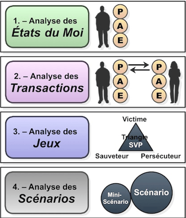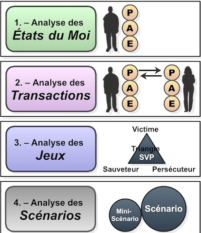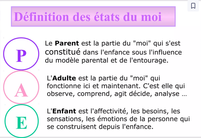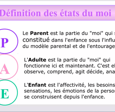 L’AT permet de décomposer les échanges entre individus (transactions) en trois états du moi : le Parent, l’Adulte, et l’Enfant. En identifiant quel état du moi est actif dans une interaction, elle aide à comprendre pourquoi certaines communications échouent ou réussissent.